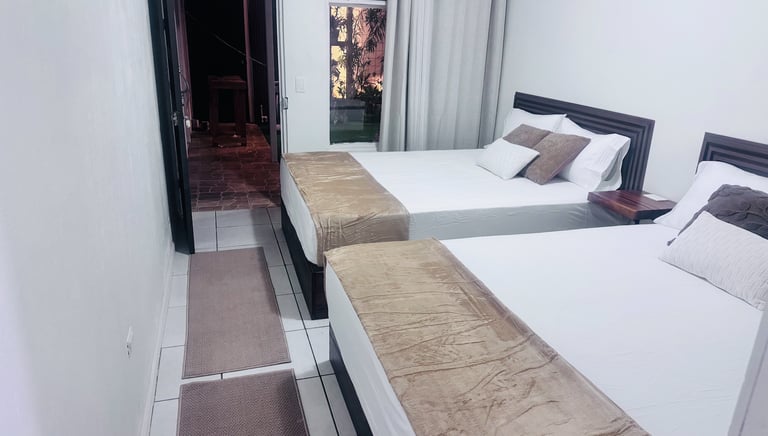 Unwind in comfort after a day of exploring Monteverde's cloud forests. Our Double Queen Bed Room features two plush queen beds, perfect for families or friends traveling together. Wake up refreshed and join fellow adventurers in our café downstairs to share stories over freshly brewed coffee and plan your next Costa Rican adventure. With room for up to four guests, your home base for unforgettable Monteverde memories.